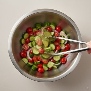 - Toss right before serving. If liquid gathers, pour it off, then dress.